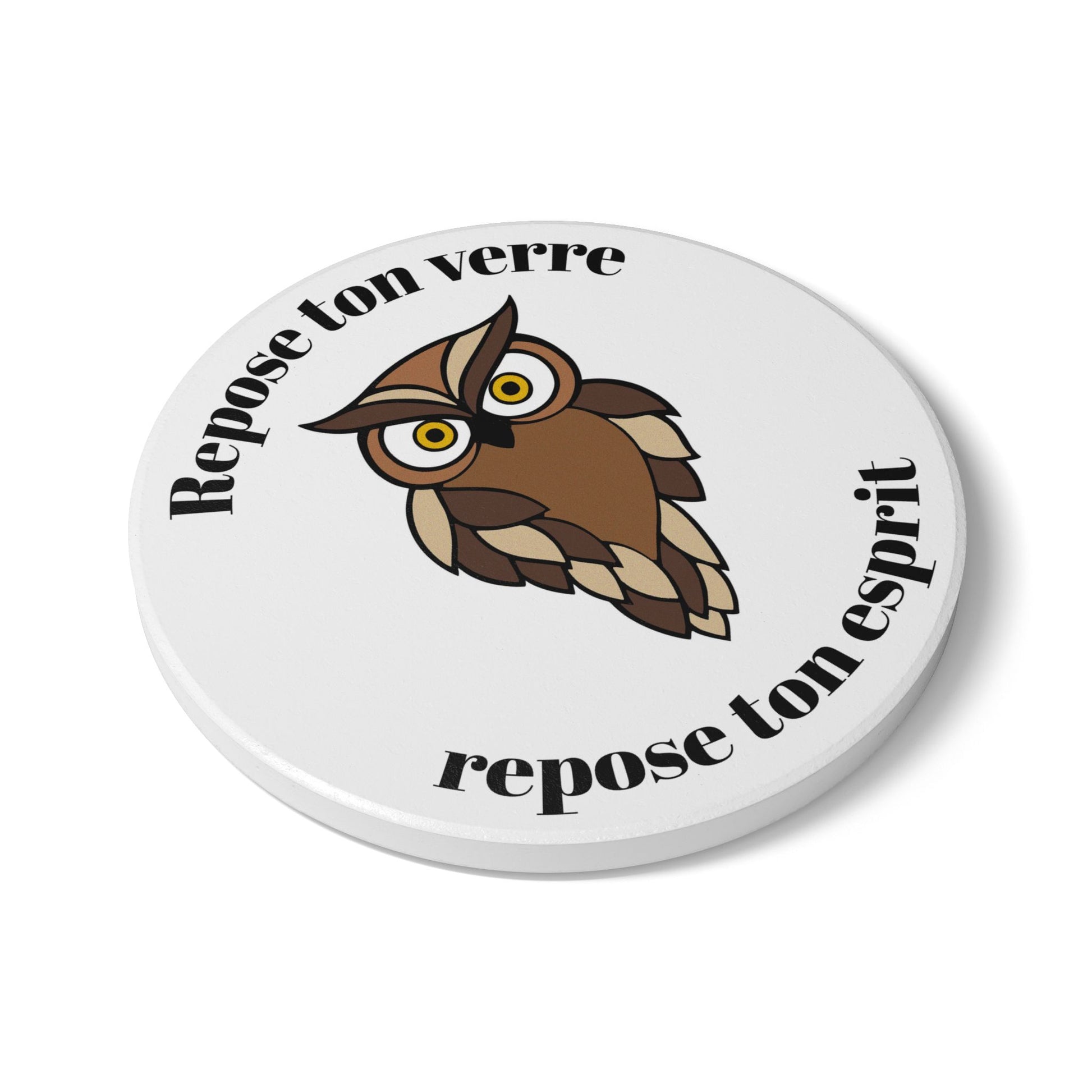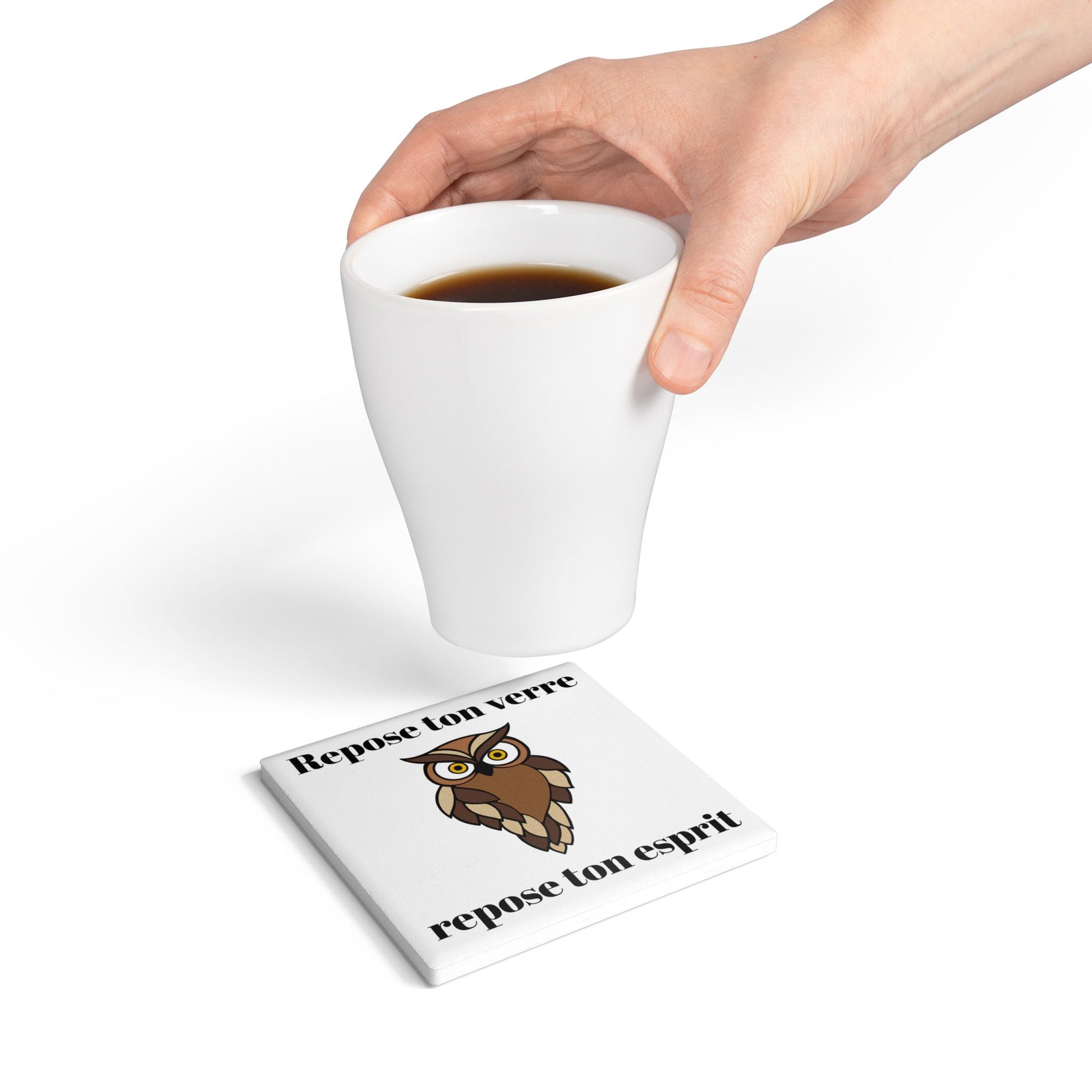 Dessous de verre en céramique "Repose ton verre, repose ton esprit" avec notre mignonne petite chouette.