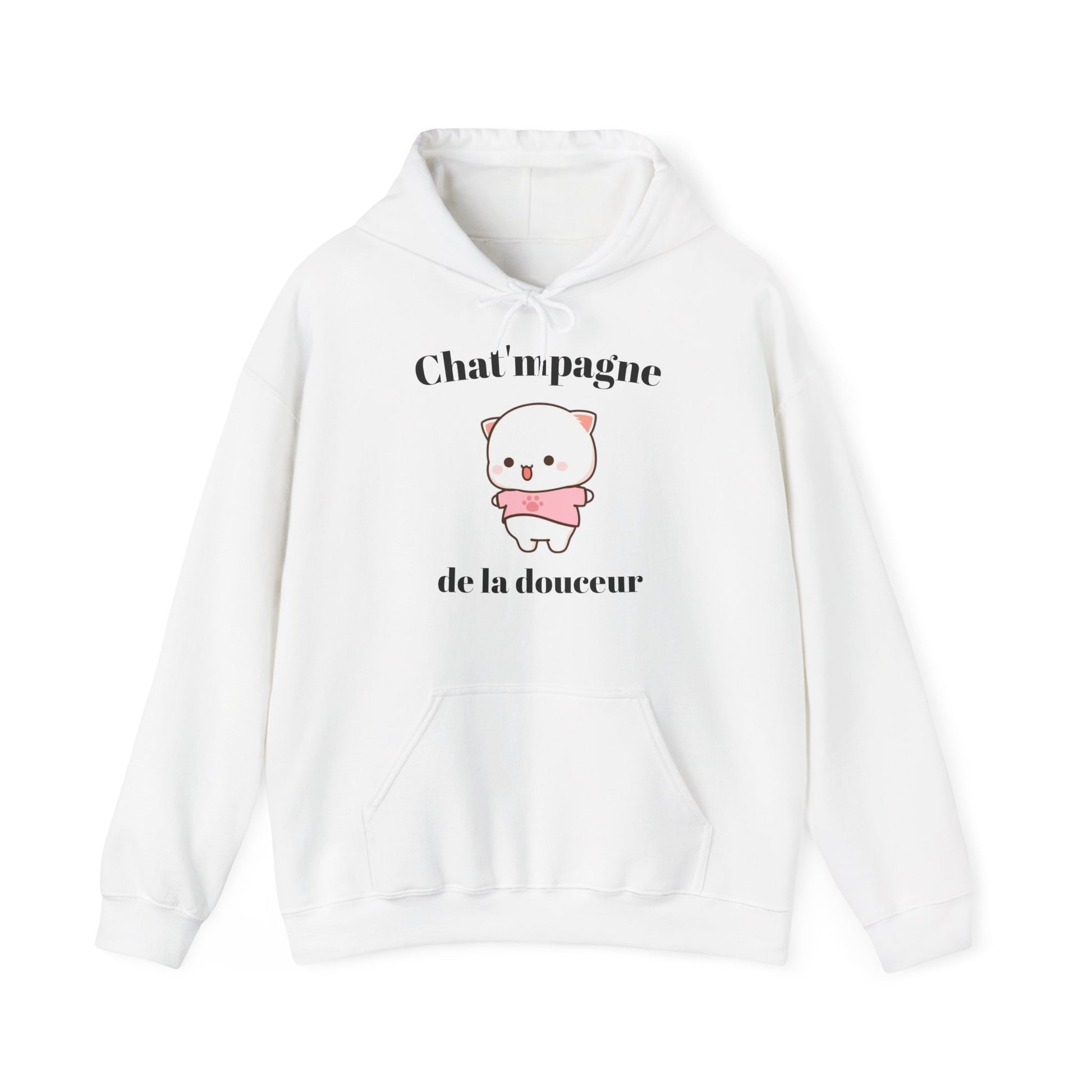 Hoodie unisexe "Chat'mpagne de la douceur" avec notre adorable petit chat.