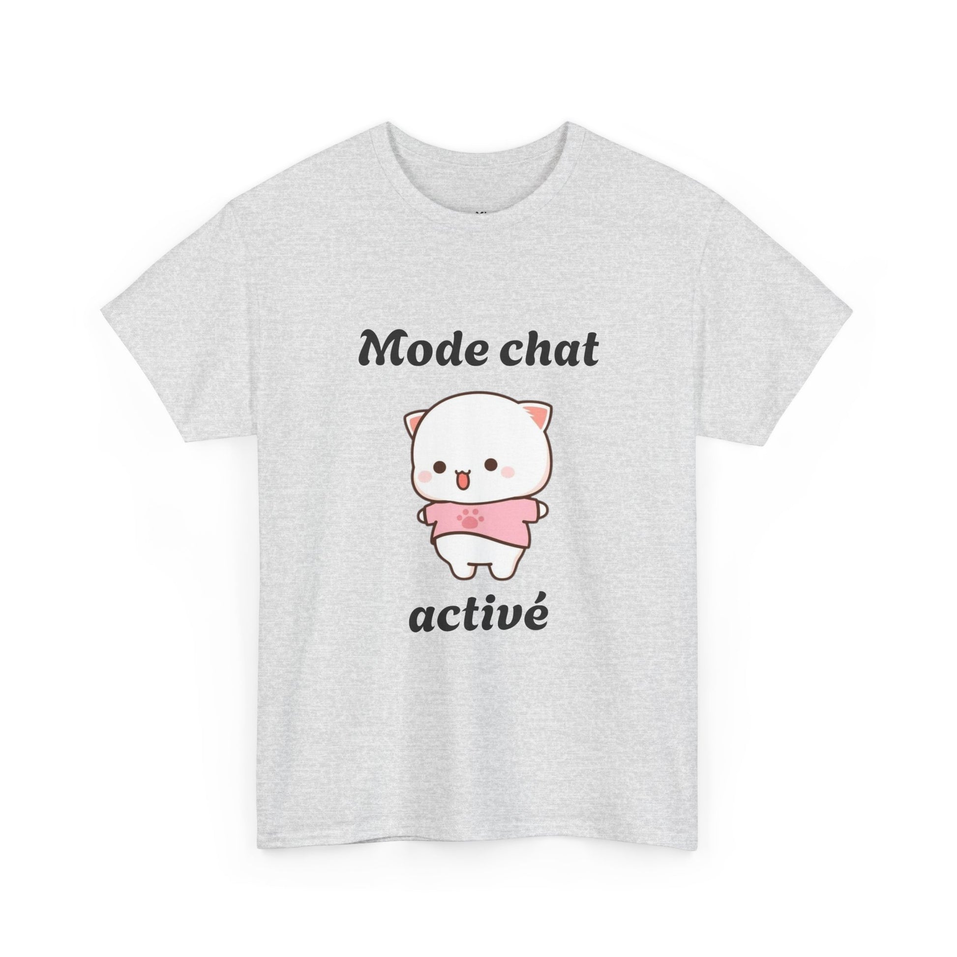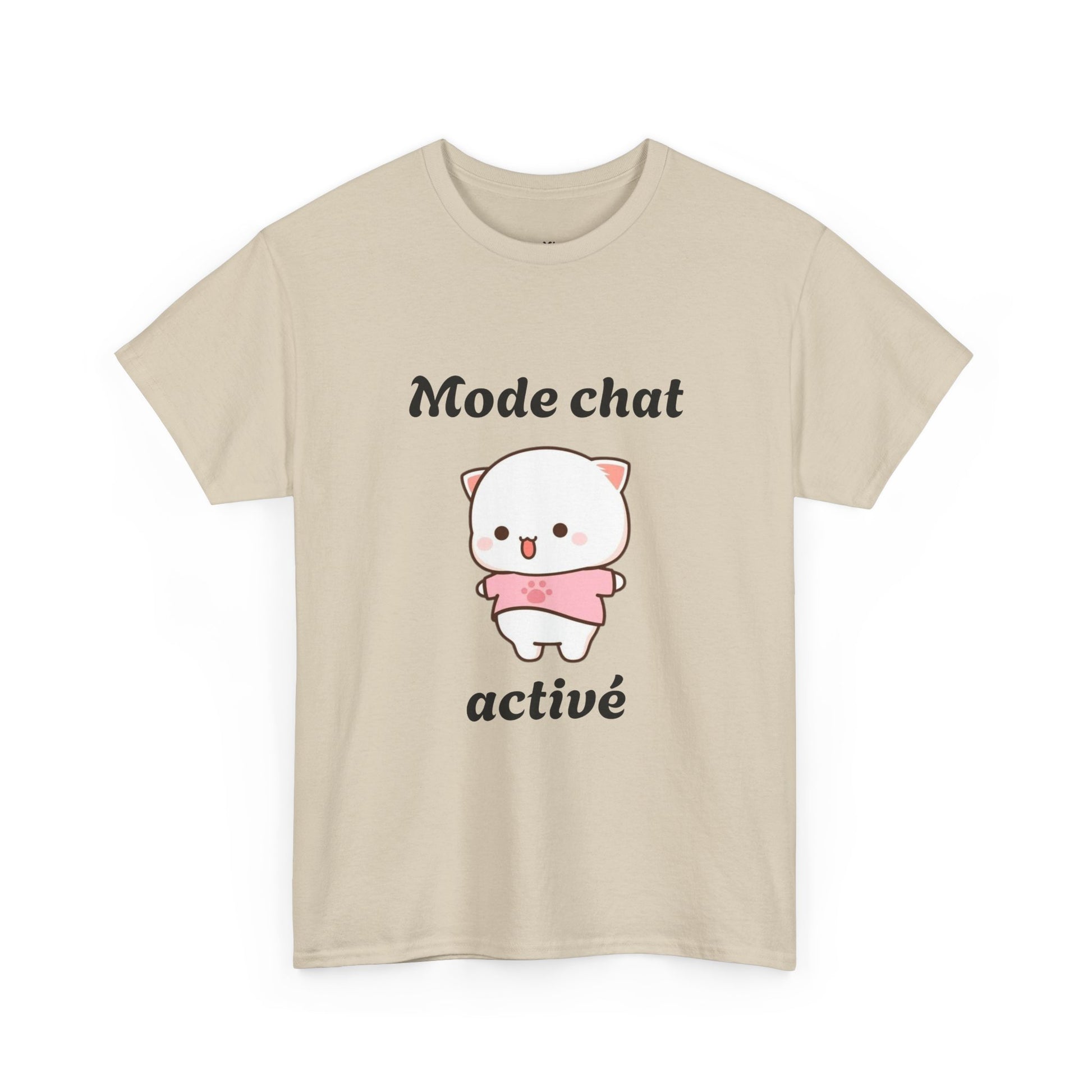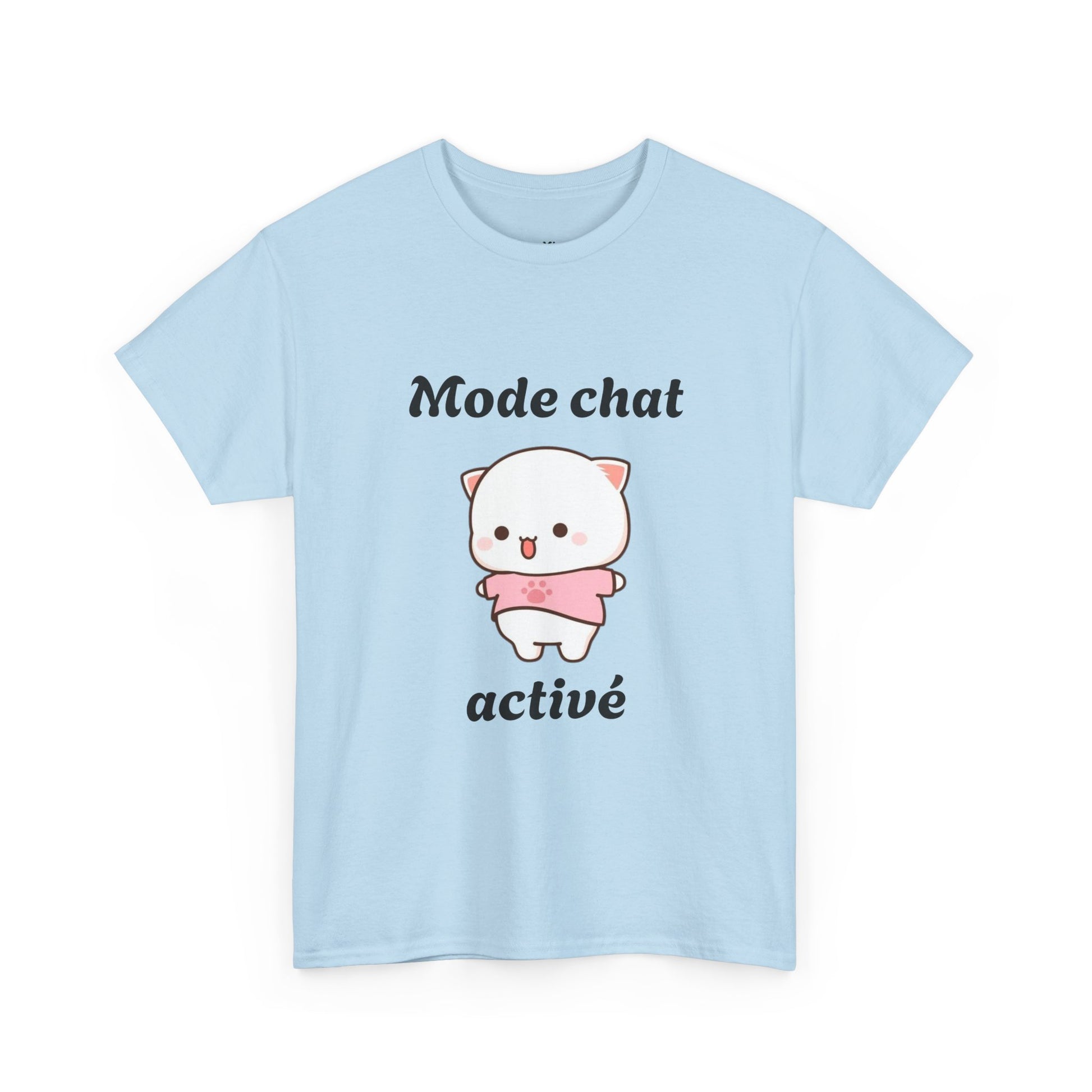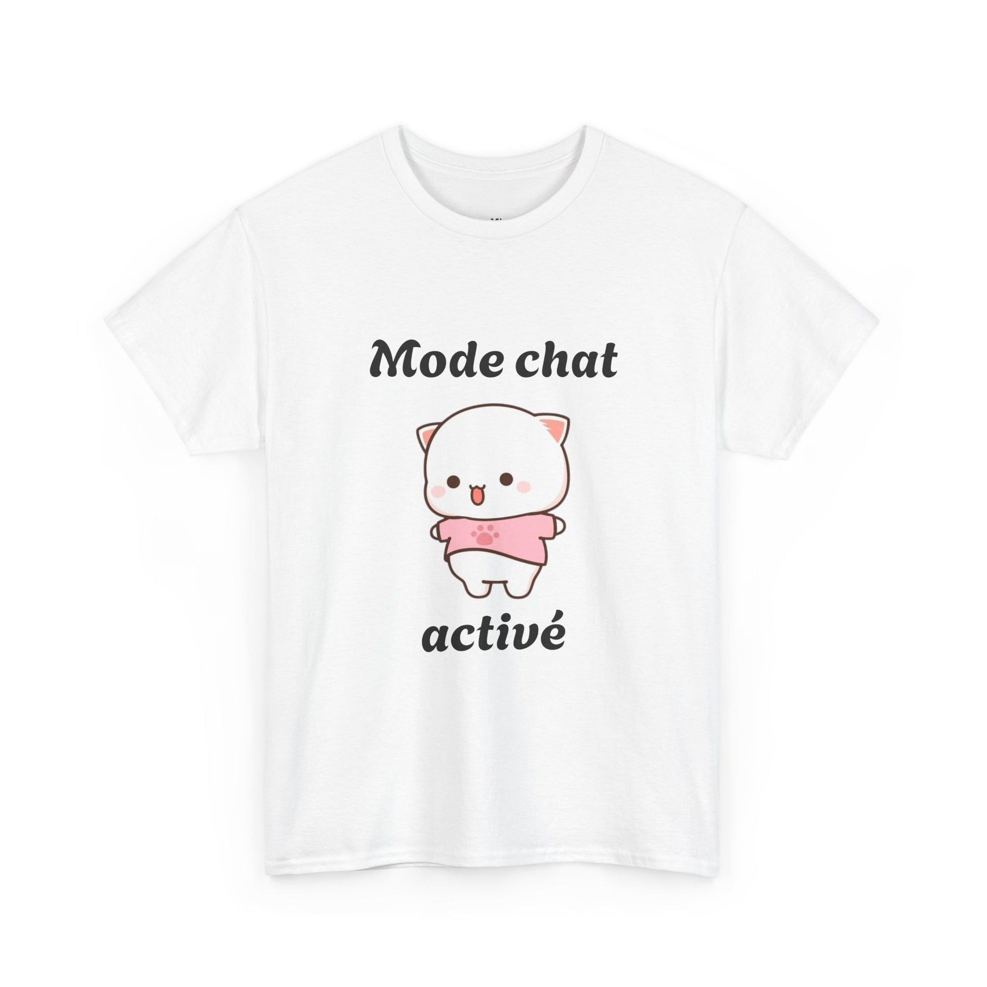 T-shirt unisex 100% coton "Mode chat activé" avec notre adorable petit chat.