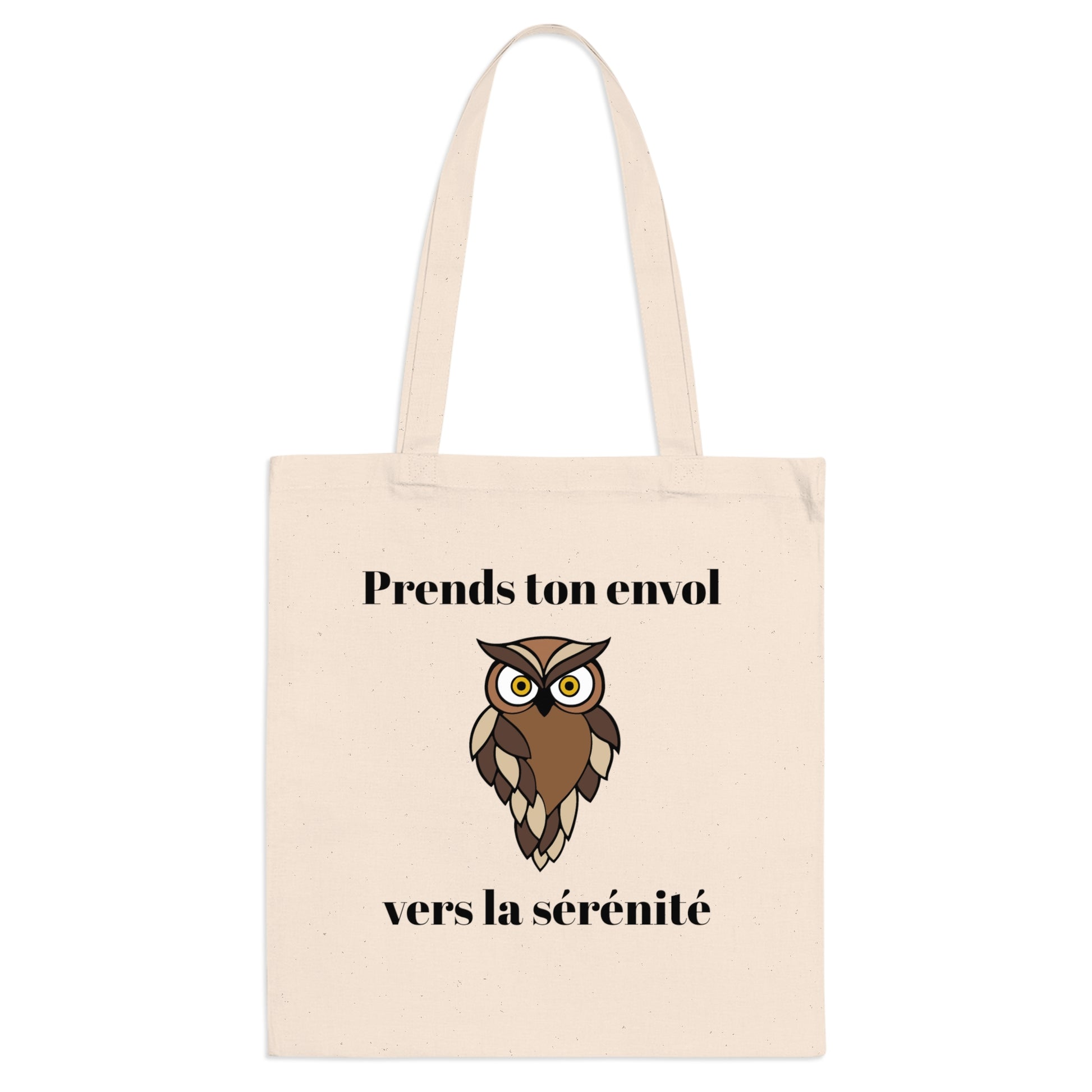 Tote bag 100% coton, couture renforcé "Prends ton envol vers la sérénité" avec notre adorable petite chouette.